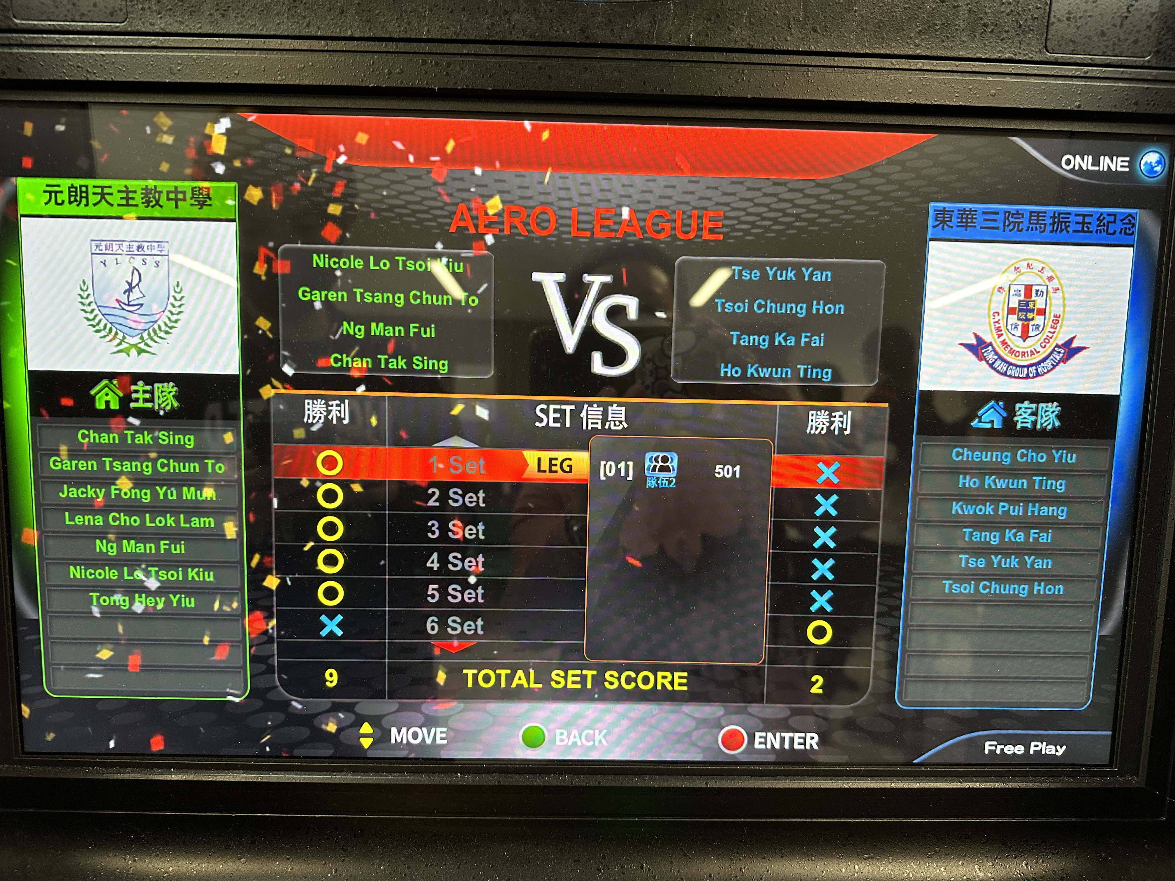 AERO LEAGUE中學校際飛鏢聯賽元朗天主教對馬振玉